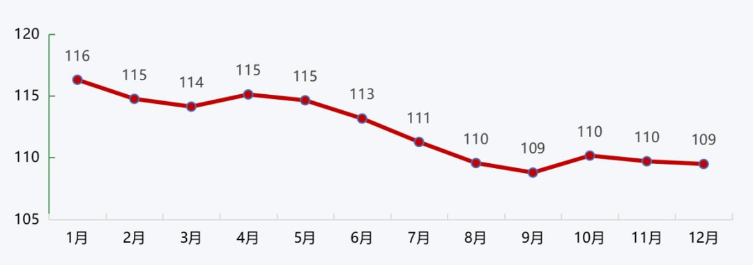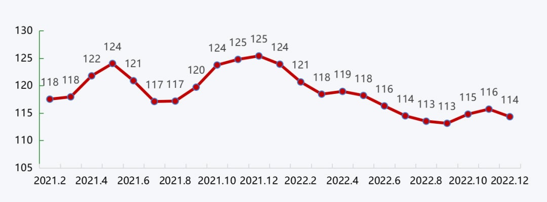 沿江城市砂石价格在年初高位运行的基础上,受到疫情封港、下游需求不佳、沿江运费高企等因素的影响,价格持续回落,进入四季度,随着施工旺季的到来,需求回升,价格也随着略有回升。整体来看,2022年沿江港口砂石价格持续回落,12月降至114元/吨,较年初下降3.4%。