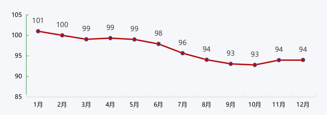 2022年12月,碎石均价94元/吨,12月同比下跌7.9%。