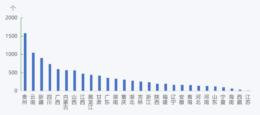 截至2021年年底,从各省(自治区、直辖市)砂石矿山的分布情况来看,贵州、云南砂石矿山数量最多,分别为1582个、1050个;新疆、四川、广西、内蒙古、山西砂石矿山数量为500~1000个;江西、黑龙江、甘肃、广东、湖南、重庆砂石矿山数量为300~500个;湖北、吉林、浙江、陕西、福建、辽宁、安徽、青海、河北、河南、山东、宁夏砂石矿山数量为100~300个;海南、西藏、江苏砂石矿山数量均在100个以内;北京、天津、上海砂石矿山数量为0。