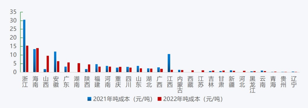 新增砂石矿权出让成交价方面,浙江、海南新设砂石采矿权出让成交价分别为15.5元/吨、14.0元/吨,价格居全国前两位,同比分别下跌49%、上涨4%,而辽宁、贵州等9省新设砂石采矿权出让成交价在1元/吨以内。