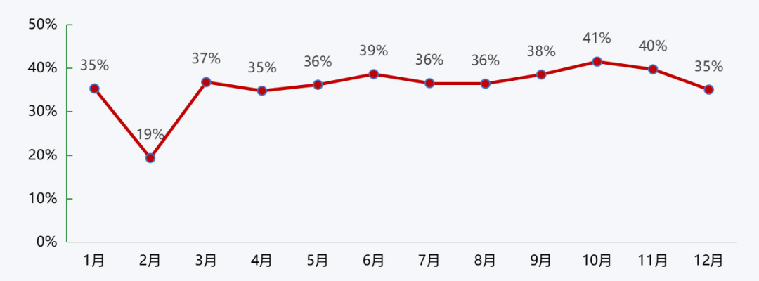 2022年砂石企业开机率和产能利用率走势较为一致,均在年初、年尾出现回落,年中保持较高水平。一季度,受春节假期、雨雪天气等影响,开机率、产能利用率均较低,2月更是分别降至38%、19%;二季度疫情逐渐缓解,三季度工程旺季到来,二、三季度开机率、产能利用率均保持较高水平,6月更是达到了年度最高水平,分别升至73%、39%;进入四季度,受到雨雪天气到来以及疫情的反复,双重因素的影响导致开机率、产能利用率均出现回落,12月,分别降至60%、35%。