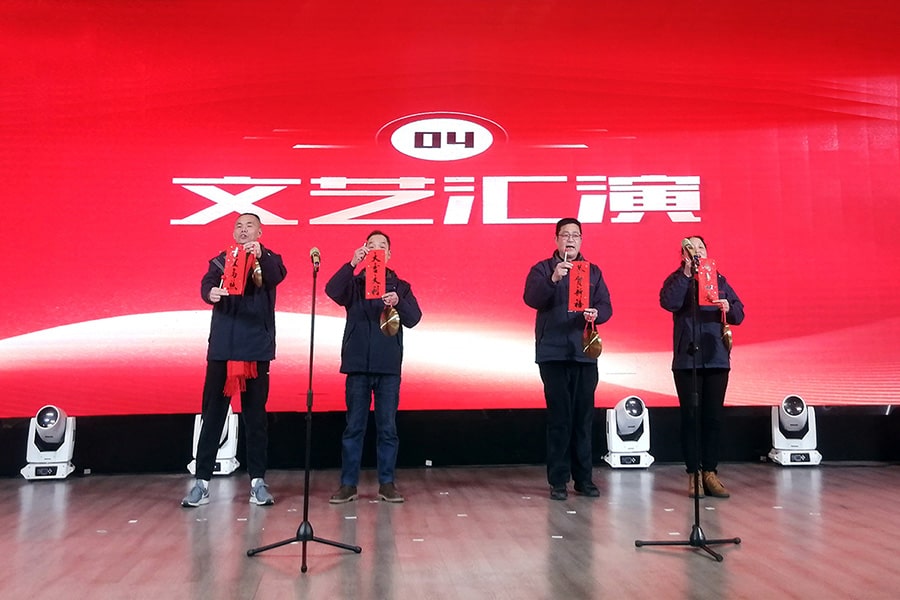 年会怎会少得了一场丰富多彩的演出呢,在催人泪下的暖场视频中将文艺演出拉开序幕。舞台上的灯光璀璨,每一位表演者都展现了他们的才华与魅力,为大家呈现出一场视觉与听觉的盛宴。