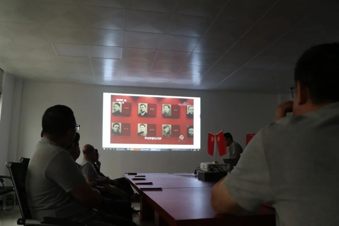 党员们观看学党史、知党情宣传片