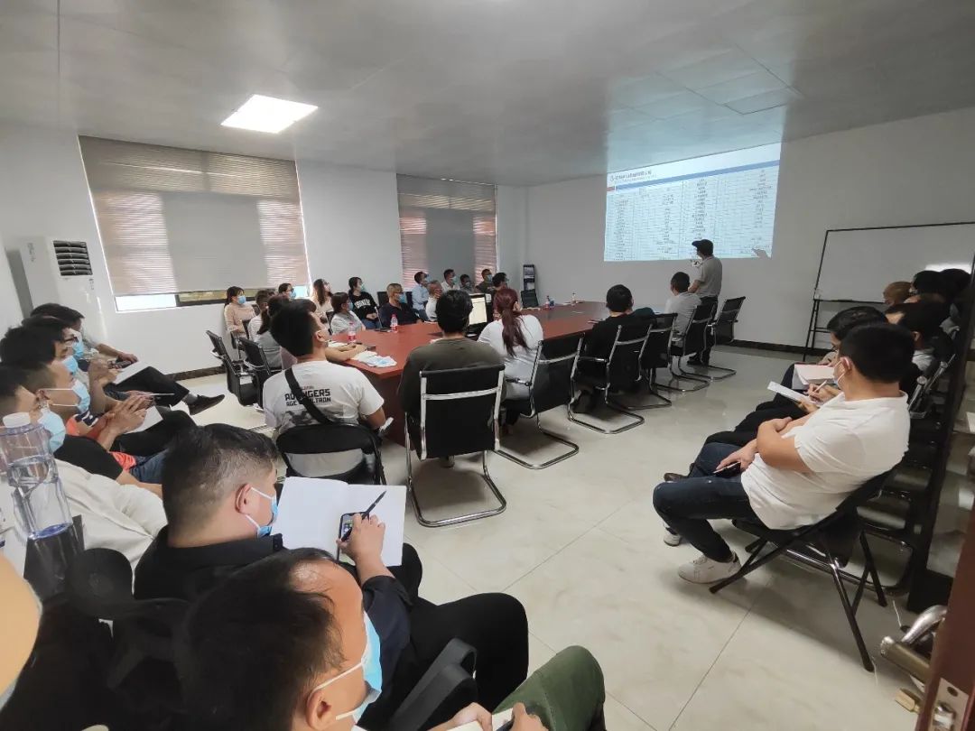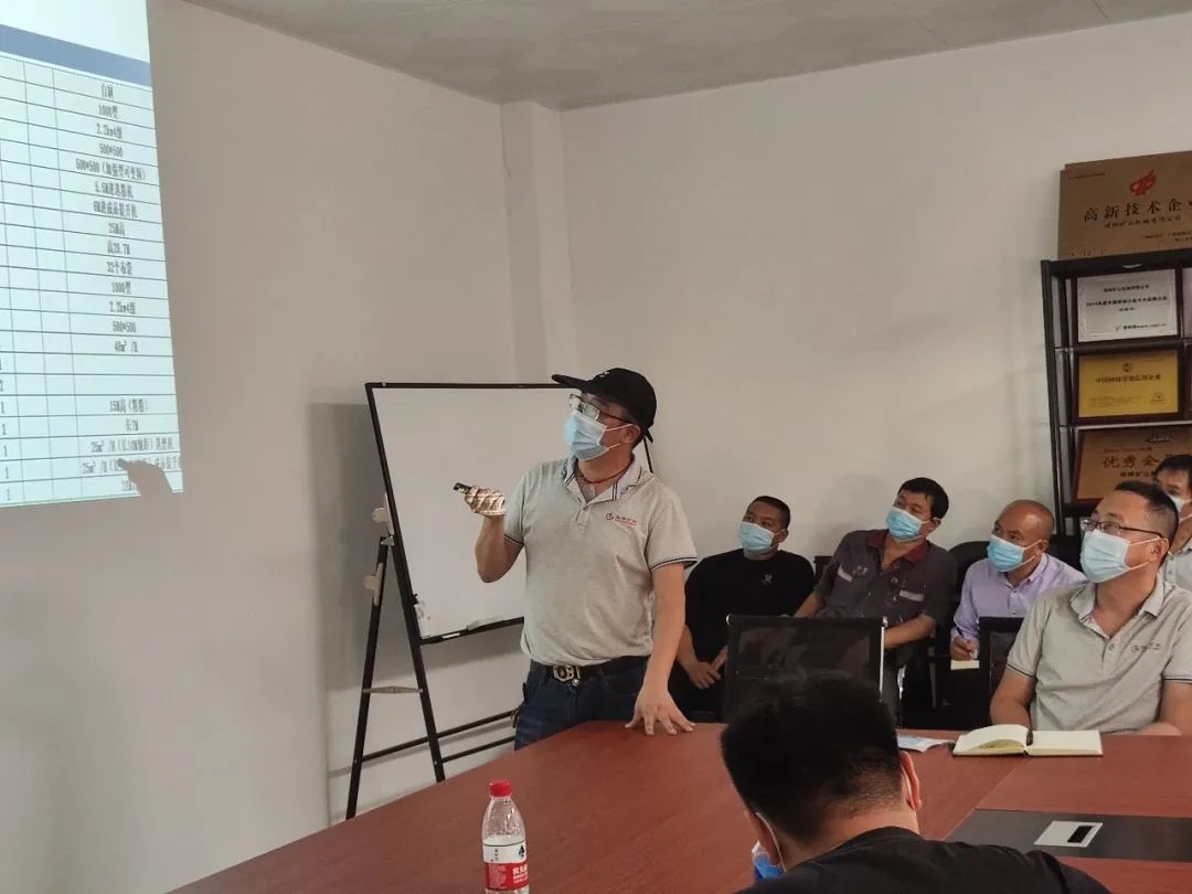 会上,研发部工程师邓源就福建、广西等多个氢氧化钙生产线项目分别从方案设计、设备采购、以及设备安装施工过程中遇到的问题做项目总结汇报。