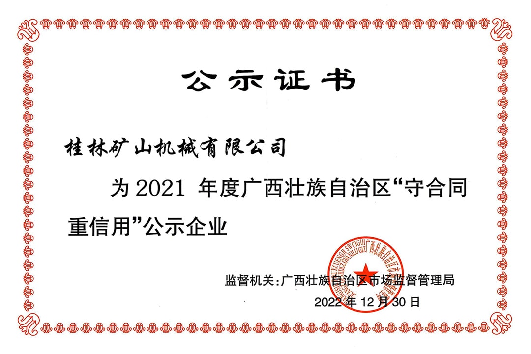 2022年末,自治区市场监督管理局发布了《关于公示广西2021年度“守合同 重信用”企业名单的通告》,博纳装备凭借诚信的经营理念和良好的市场信誉等优势,再获“守合同 重信用”企业荣誉称号。这份殊荣不仅是博纳装备持续耕耘“以信为本”的努力付出的结果,更是博纳装备“技术升级、研发升级、工艺升级、文化升级”的锤炼升级。