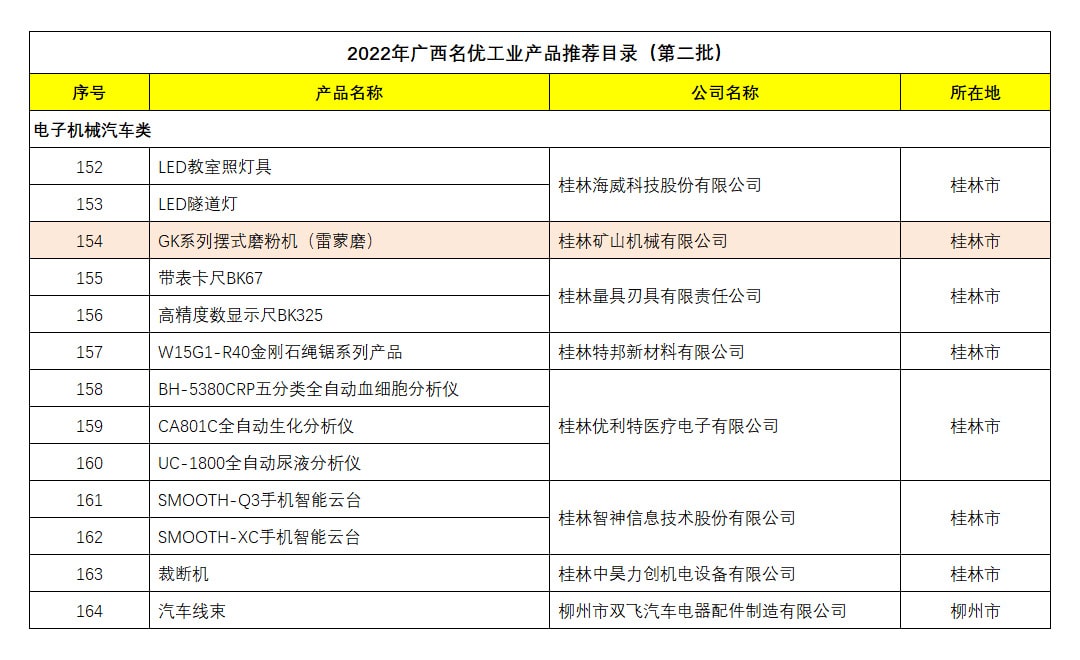 日前,通过自治区工业和信息化厅发布关于广西名优工业产品推荐目录(第二批)的公示,博纳装备摆式磨粉机产品成功入选《广西名优工业产品推荐目录》(第二批)。