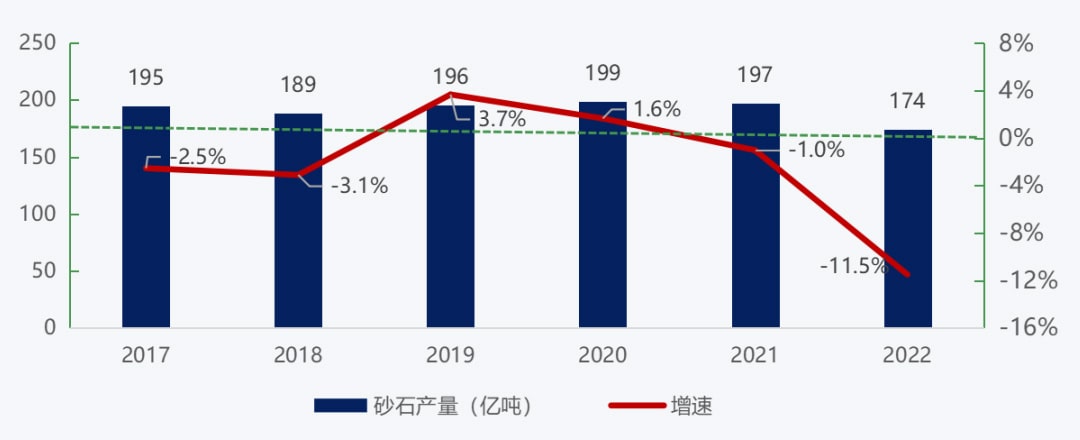 2017-2022年我国砂石产量变化情况