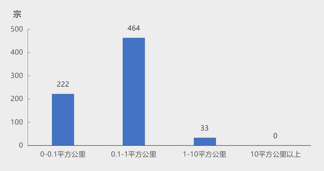 2022年新设砂石矿权矿区面积分布