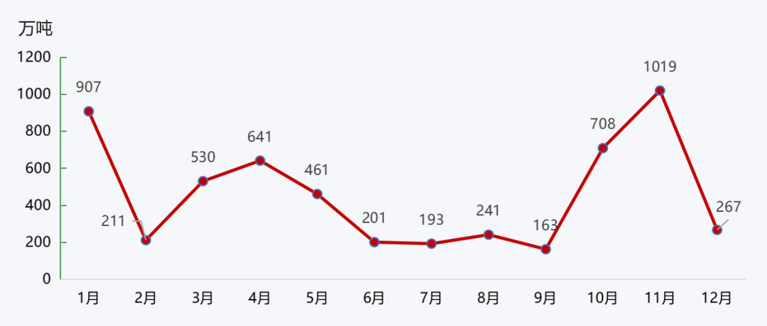 根据对重点砂石企业监测显示,重点砂石企业在四季度日均出货量高位运行,其他时间均保持低位。一季度,春节假期,砂石矿山厂停工,叠加需求不足等因素,重点砂石企业日均出货量低位运行;二季度,随着疫情的好转,砂石运输条件的改善,重点砂石企业日均出货量有所回升,4月升至641万吨/日;三季度,疫情反复、施工项目进度缓慢影响砂石需求,重点砂石企业日均出货量持续回落,9月降至163万吨/日;四季度,随着工程旺季的到来,砂石需求回升,重点砂石企业日均出货量达到年度最高值,11月达到了1019万吨/日。