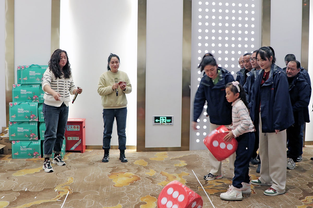 游戏开始,首先进行的是掷色子环节。员工们按照顺序,掷出色子,随着色子的落地,点数不断变化,也让结果都充满了紧张与期待。紧接着是套圈环节。员工们站在指定的位置,手持套圈,向目标投去。目标各式各样,要想准确地套住目标,不仅需要技巧,更需要耐心和专注。现场不时传来欢笑声和欢呼声,每一次成功的套圈都赢得了大家的赞赏。